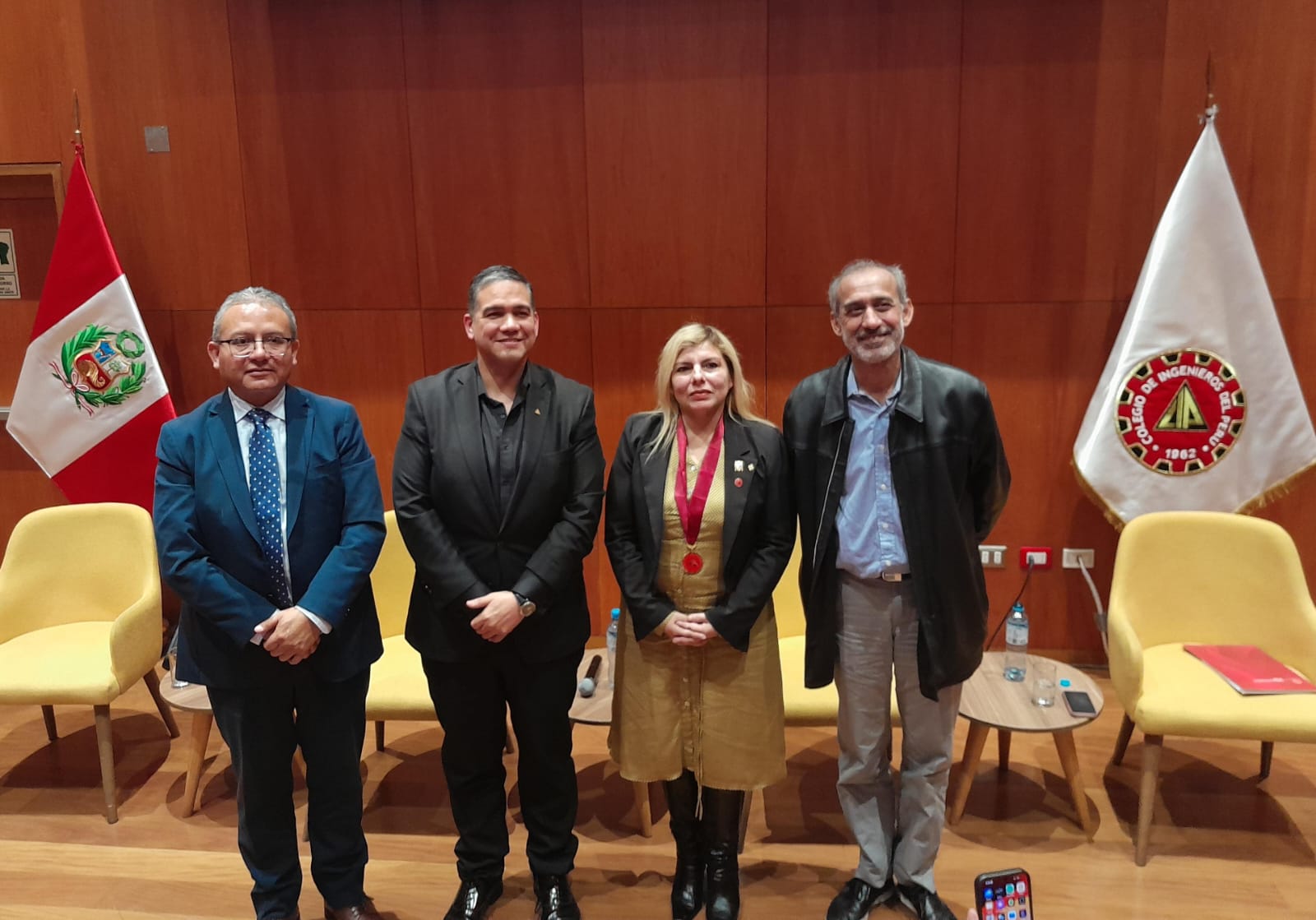 Posteriormente, se desarrolló el Panel Central “Formalización Minera y Desafíos en su Implementación”, conducido con gran solvencia por la Ing. Melisa Ramírez, Presidente del Capítulo de Ingeniería Geológica del CIP-CDLima, quien moderó el diálogo entre destacados especialistas: el Dr. Máximo Gallo, el Dr. Eduardo Lanao, Presidente Ejecutivo de ProMinería, y el Dr. José Farfán, especialista en minería de ANPLABEN. Bajo su conducción, el panel abordó los retos regulatorios, técnicos y sociales de la formalización minera, generando un intercambio de visiones clave para el futuro del sector.La Mesa de Diálogo culminó con un cóctel de confraternidad y GeoNetworking, que permitió fortalecer vínculos entre autoridades, especialistas y profesionales del rubro.